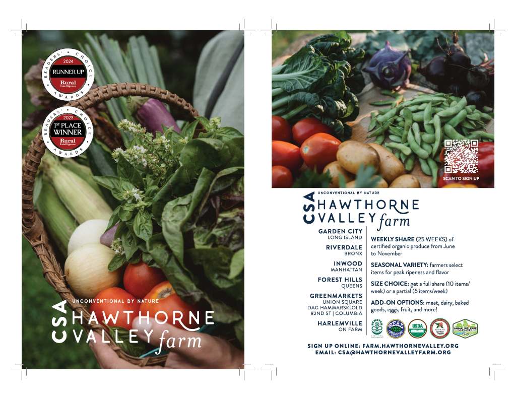 The Riverdale CSA was established in 1996 in collaboration with Riverdale Neighborhood House (RNH) in the Bronx, New York. CSA, which stands for Community Supported Agriculture, is a unique partnership between a specific farm and a group of consumers. Membership in our growing season CSA means receiving a share of the weekly garden harvest of Hawthorne Valley Farm (HVF), as well as access to shares of an assortment of their other products, for 25 weeks beginning in June and going into November. It also means coming to know and understand the life of this particular farm and supporting the farmers in their efforts to grow healthy, nutritious food in a way that is environmentally responsible. Go here to learn more about HVF: